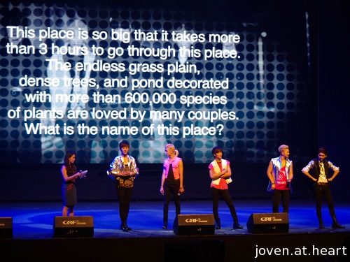 Okay, so after reviewing all my videos, I must say that the audio is pretty bad so I won’t upload any of the performances. I will however, upload a game segment called “Quiz Show” coz even though you might not be able to hear what people are saying clearly, you can watch the Nu’est boys’ reaction and it is hilarious. This game is actually the second one and it is where they are already warmed up and competitive.
