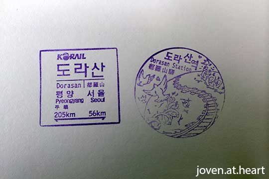TIP: If you go into the JSA, you will be able to visit the Dorasan Train station which technically connects South Korea to North Korea by rail. Bring some paper/index cards there, they have 2 commemorative stamps that you can stamp as if you have crossed the international border to enter into North Korea. 🙂