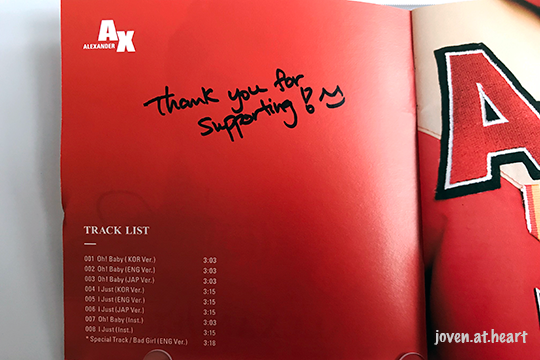 I wanted Xander to sign on my album but the manager said “no”. However, I heard some fans calling out that I had waited for so long to meet Xander and so the manager relented. Thank you all who helped me!!